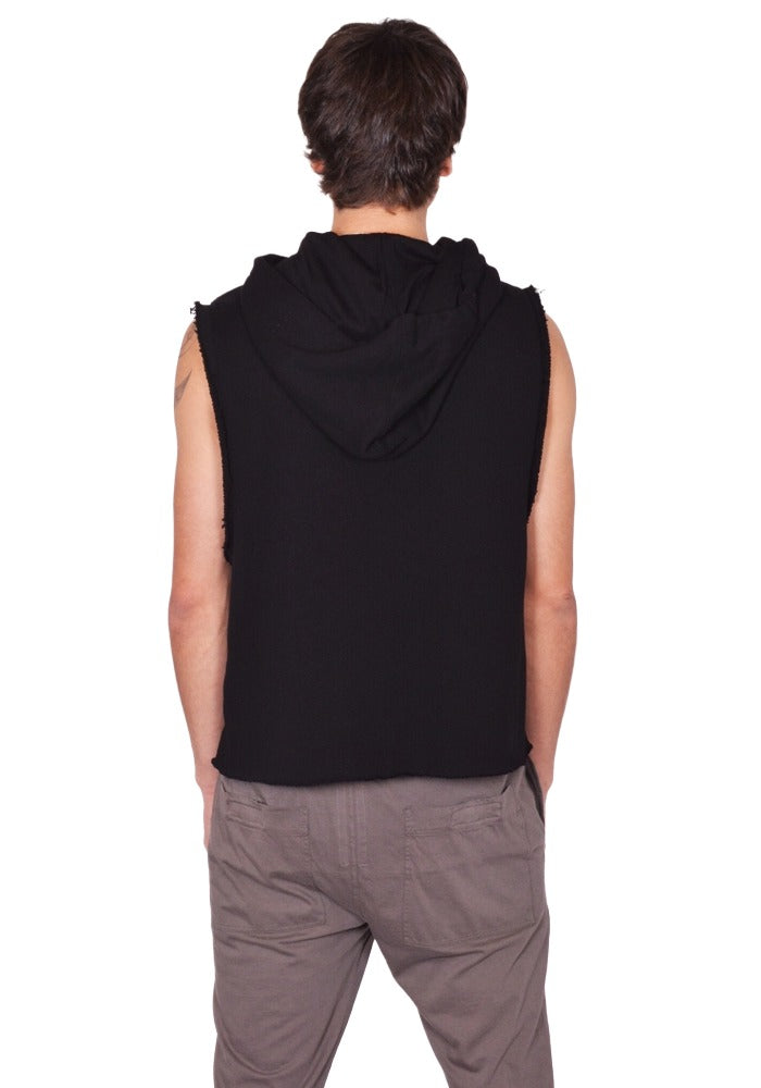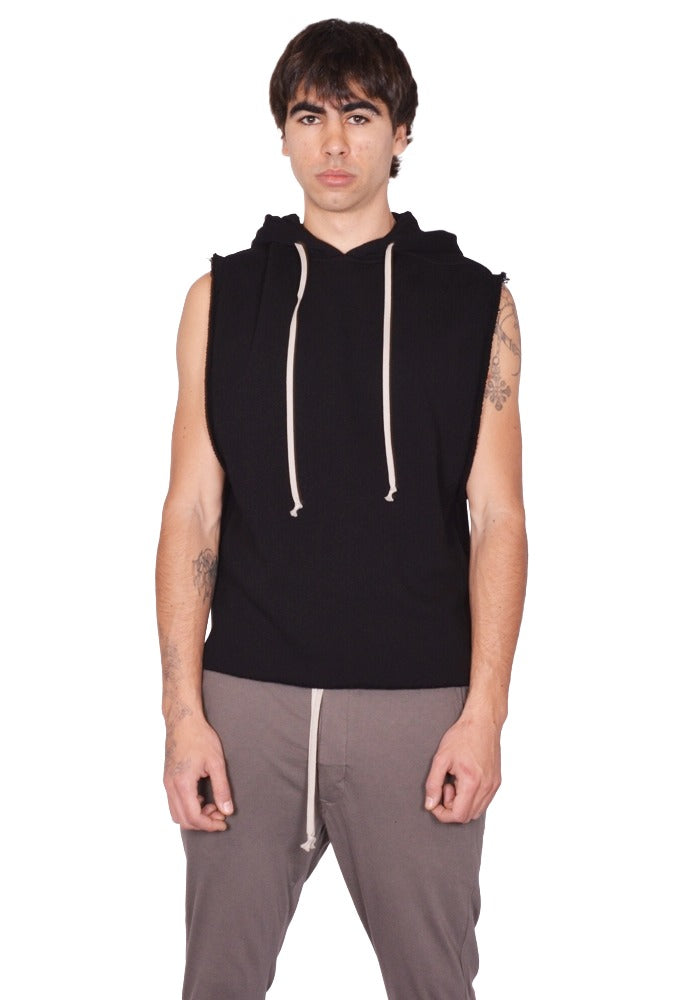 RICK OWENS MEN RU01F2153 JNT SLEEVELESS SWEAT HOODIE BLACK - DOSHABURI