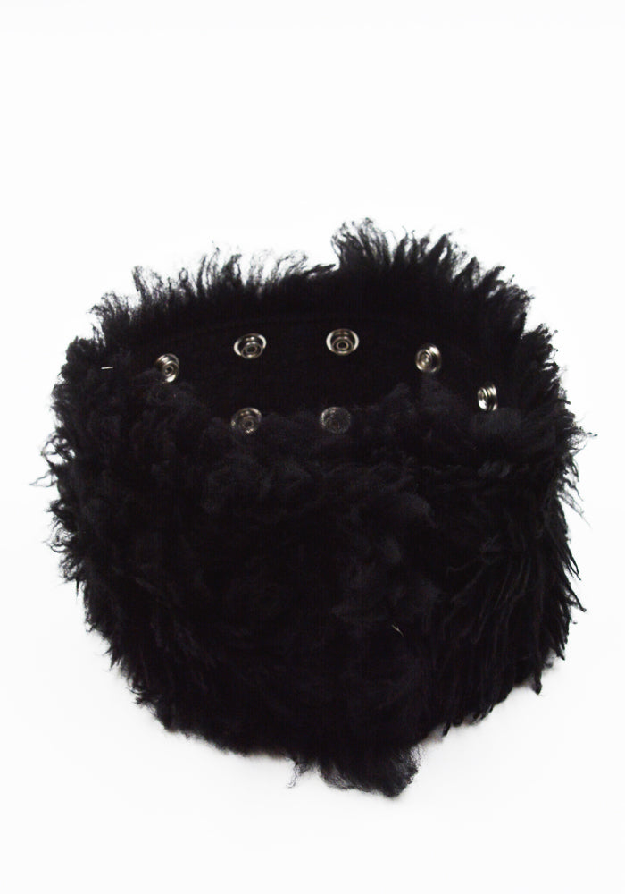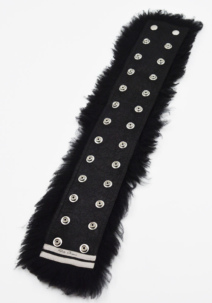 Neck band in black lamb shearling real fur features snap details and snap fastening from Rick Owens 2025FW "concordians" Collection.