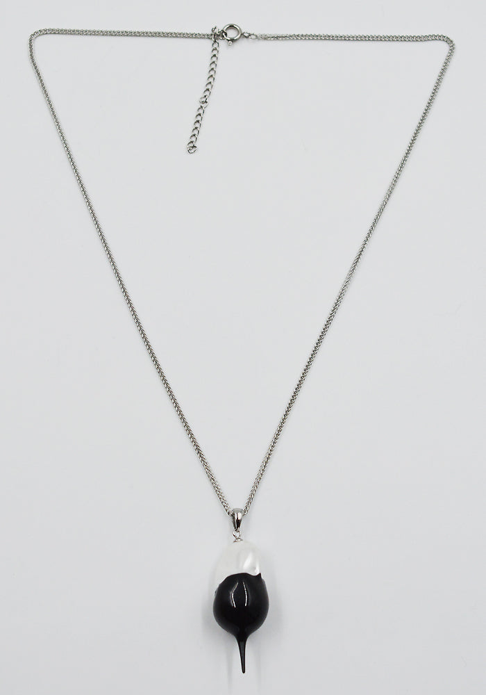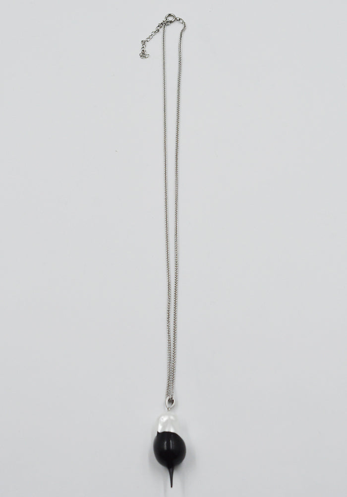 Silver tone chain necklace with a black rubber-dipped faux pearl pendant top from Ottolinger 2025FW collection.