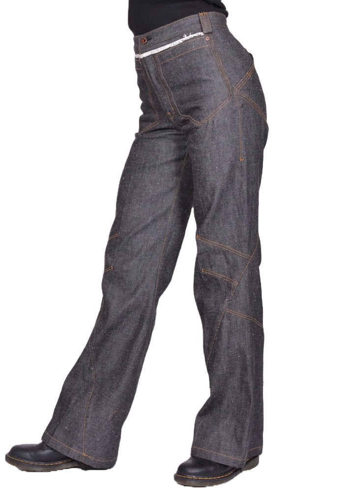 Regular fit with a straight cut, darted details, frayed waist, angled back pockets with a “K” motif belt loop, and contrast stitching.