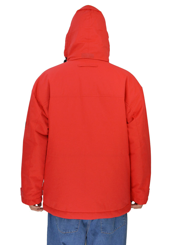 左袖にブランドロゴパッチが付けられた、真っ赤な無地のパデッドジャケットがNAPA BY MARTINE ROSE (ナパ バイ マルティーン ローズ) 2019FWコレクションより入荷。
