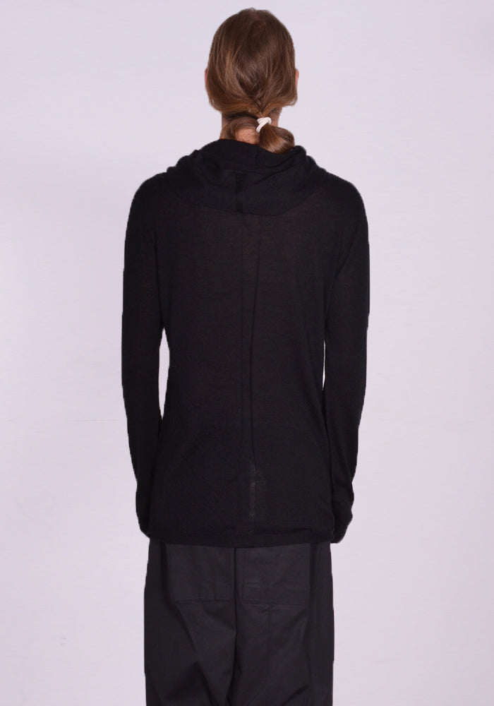 RICK OWENS MEN RU01D3623 WS 09 HOODED KNIT SWEATER BLACK
