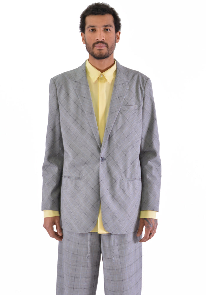 Unisex classic jacket in glen check featuring a button front closure, and a back slit from Overcoat 2020SS Collection.