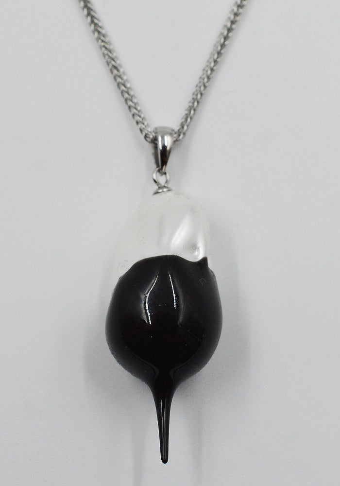 シルバー調のチェーンネックレスに、黒のラバーコーティングを施したフェイクパールペンダントトップが付いたOttolinger 2025FWコレクションのアイテムです。