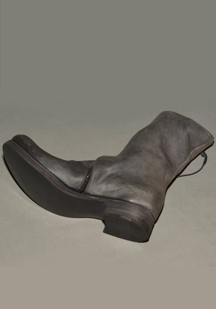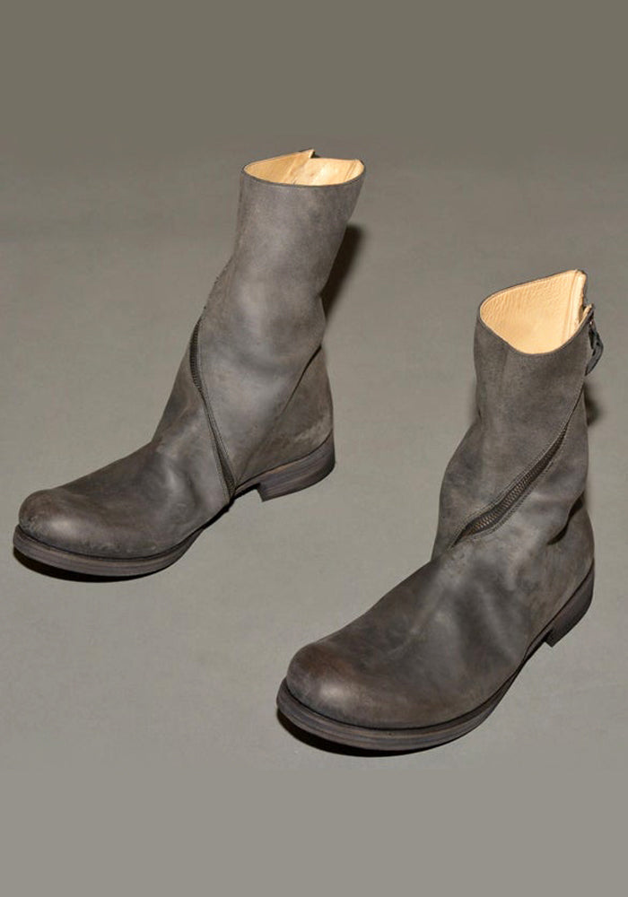 100% Horse leather, Men's Mid length boots in light black featuring a round toe, diagonal zipped closure, leather soles and stacked leather heel from m.a+ by Maurizio Amadei 2016 fall & winter collection. *Comes with a canvas case and spare soles.