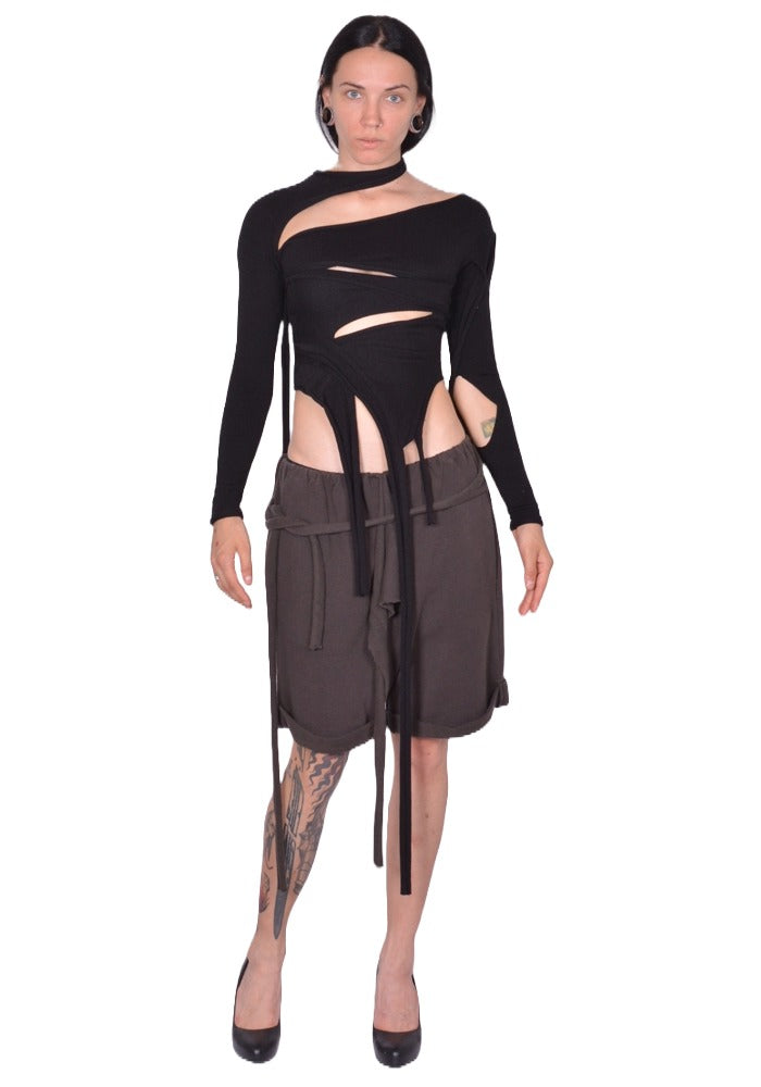 OTTOLINGER 107-106607-01 CUT-OUT LONG SLEEVE KNIT TOP BLACK