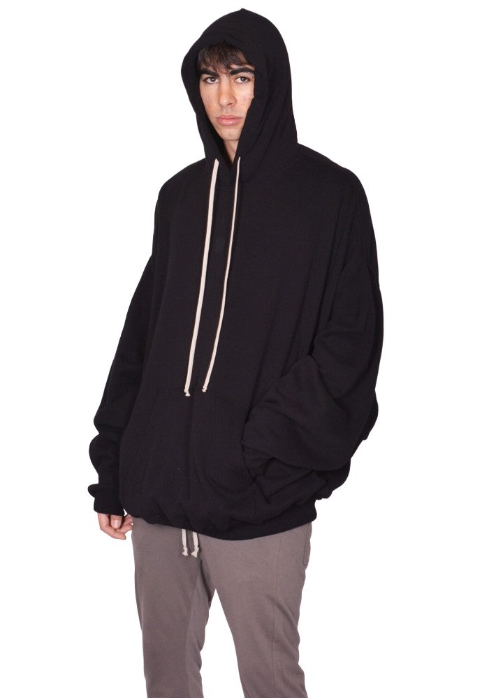 RICK OWENS MEN RU01F2288 JNT HUN SWEAT HOODIE BLACK